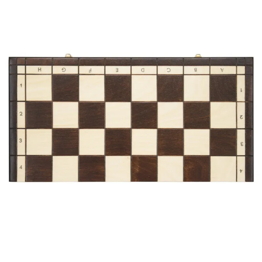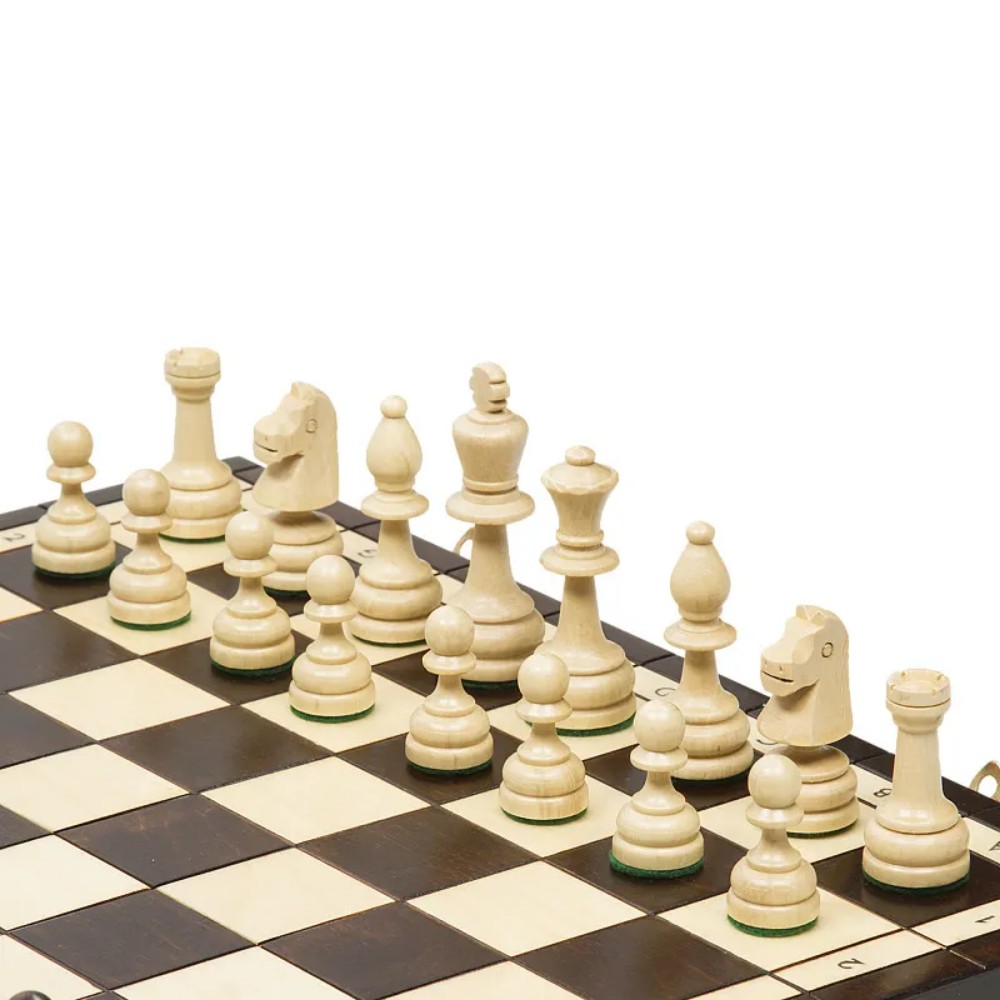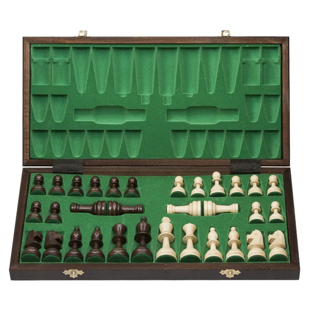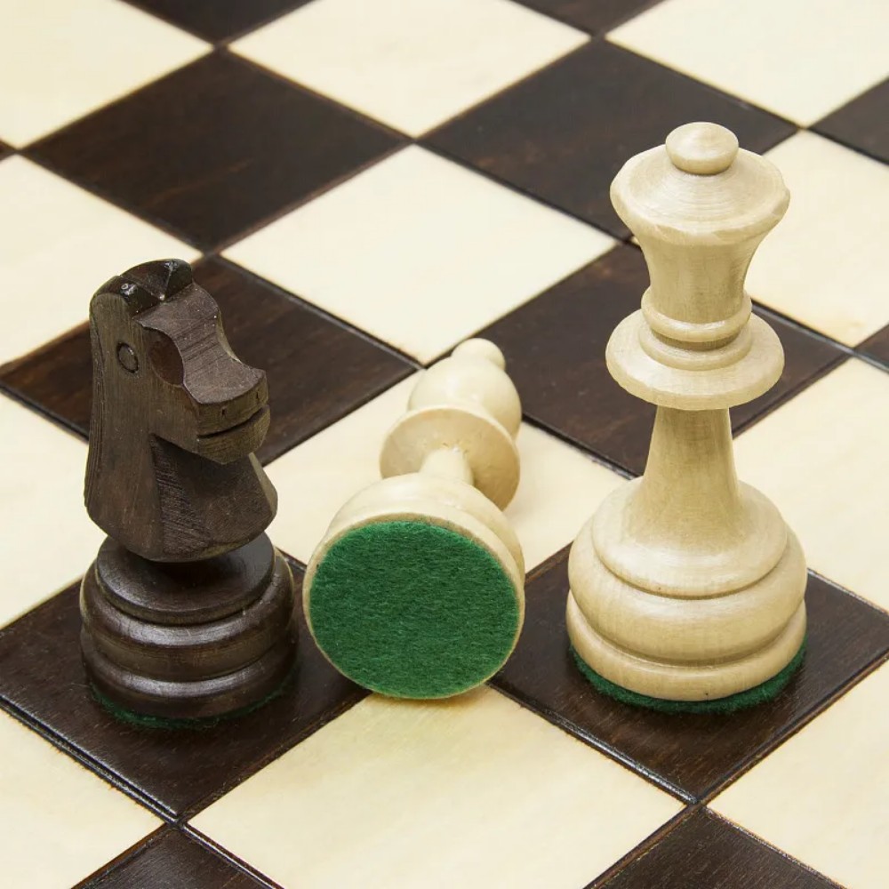 Классические шахматы "Олимпик 40" высокого качества, представленные в средней ценовой категории. Выполнены они из комбинации нескольких пород натуральной древесины. Для большей прочности и износостойкости каждая деталь покрыта защитным лаком. Дно каждой детали защищено специальной накладкой, предотвращающей царапание доски. Внутренняя сторона доски, держащейся на алюминиевых петлях, представляет собой лоток с ячейками для каждой фигуры, что гарантирует надежное хранение.