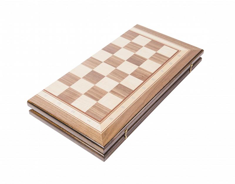 Классическая модель шахмат «Турнирные-1» с инкрустацией – идеальный вариант для тех, кто хочет купить долговечный и статусный набор для игры в шахматы. Такой комплект может стать прекрасным пополнением домашней коллекции или подарком дорогому человеку, любящему классические настольные игры. Доска и фигуры выполнены из высококачественного дерева и инкрустированы в технике маркетри натуральной древесиной драгоценных пород. Каждая фигура имеет подложку, предотвращающую царапание доски. Долговечная и износостойкая фурнитура доски сделана из металла.