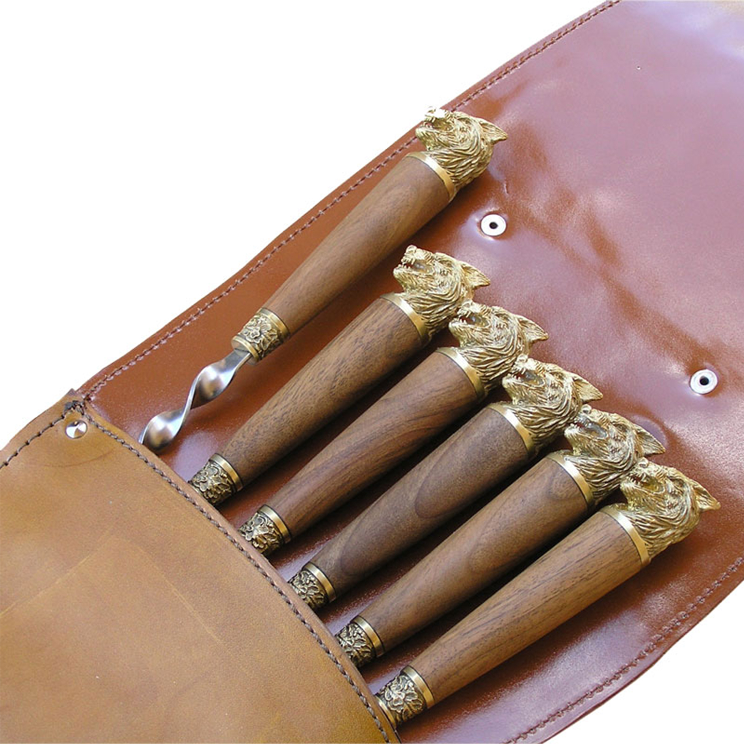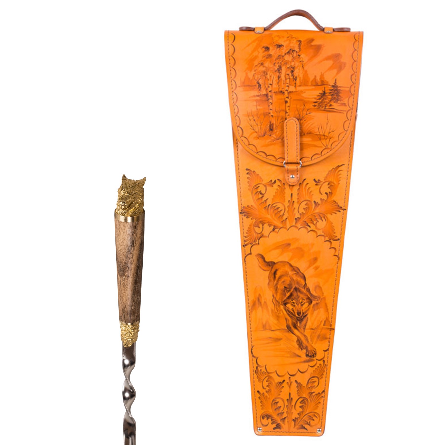 ----Шампура подарочные «Волк» 6шт. в колчане из натуральной кожи (роспись), арт.305КК6
