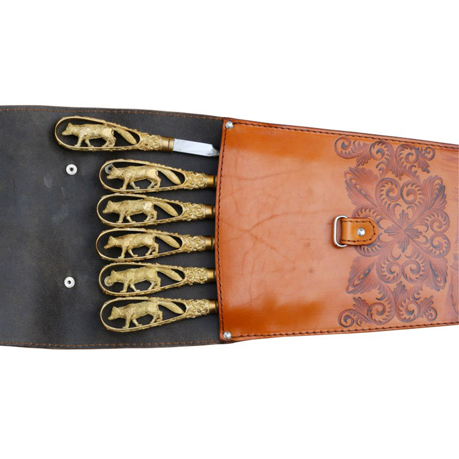 Шампура подарочные «Лиса» 6шт. в колчане из натуральной кожи (роспись), арт.372ЛИ6