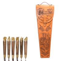 Шампура подарочные 6шт. (звери) в колчане из натуральной кожи (охотник, гравировка), арт.308КК6-Г2