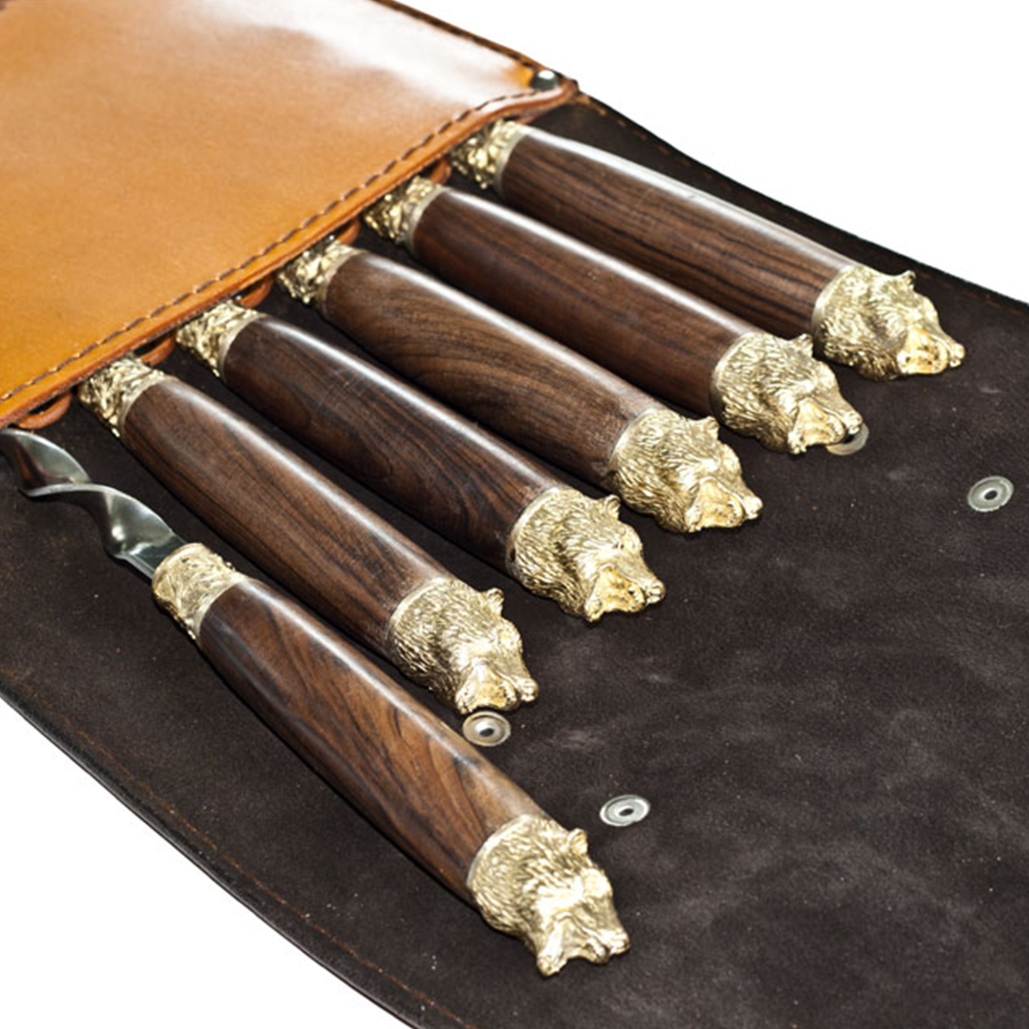 Шампур с рукоятью из ореха и латуни в виде головы медведя (общая длина шампура — 69 см: длина полотна — 54 см, длина рукояти — 15 см) | 6шт. |
