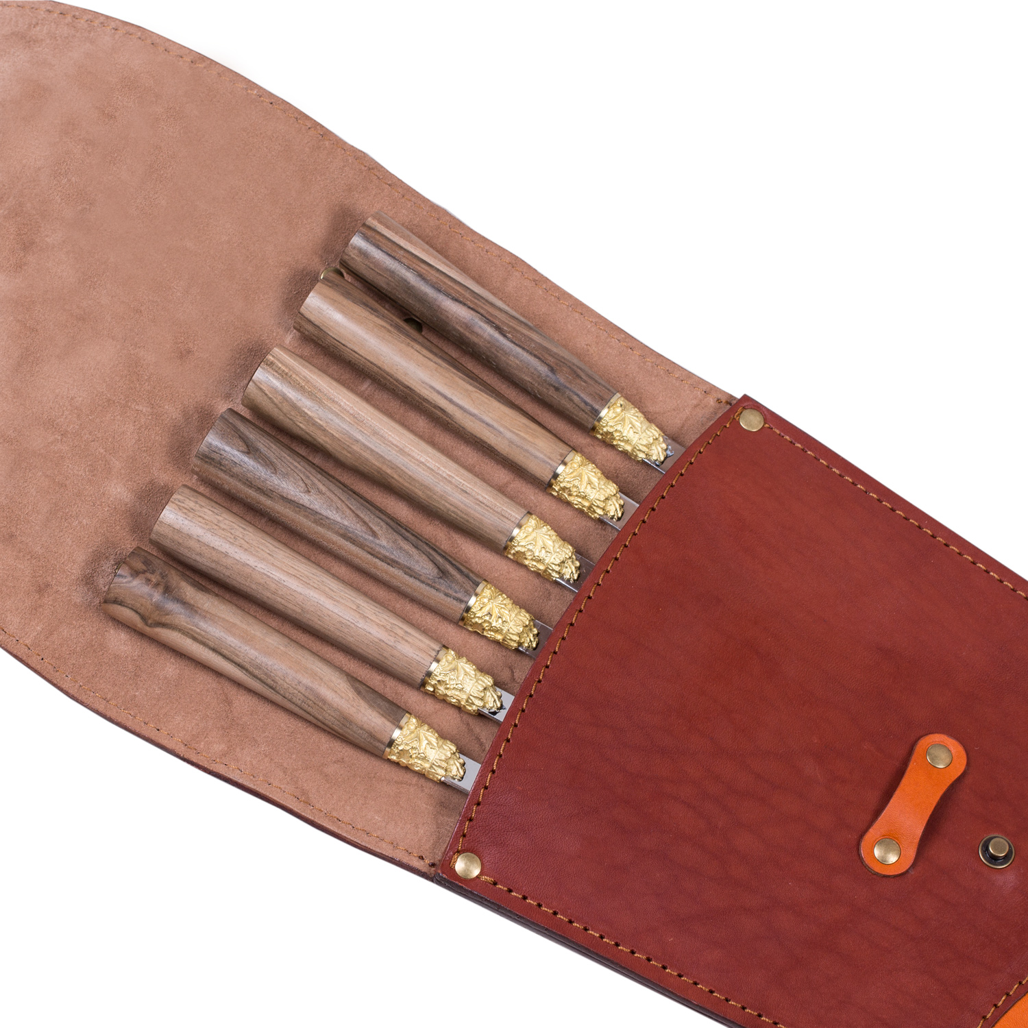 ----Шампура подарочные 6шт. в колчане из натуральной кожи, арт.НШ.002.РК.ОЛ.Т1