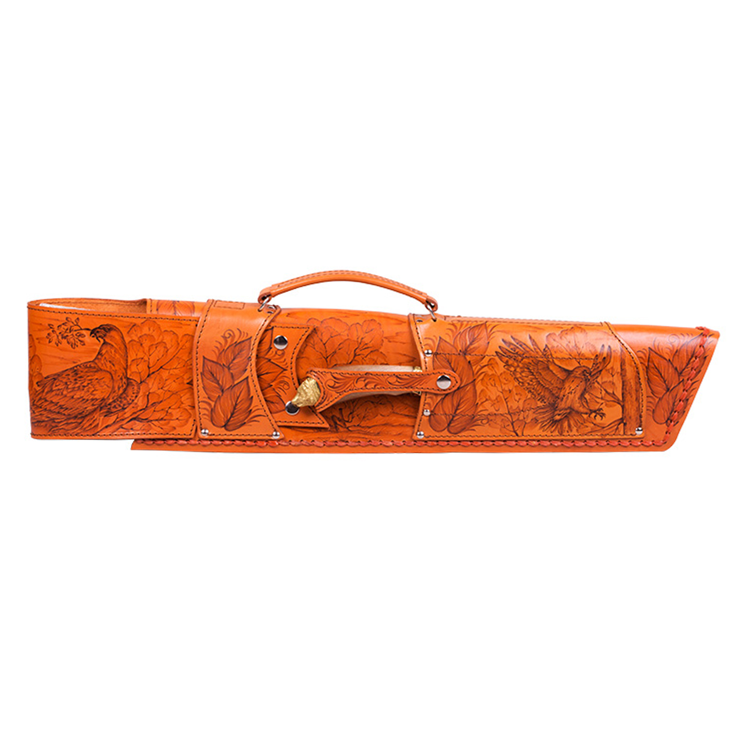 Шампурница из натуральной кожи в виде чехла ружья (производится в 2 цветовых вариантах: темно-коричневый без рисунков либо желто-оранжевый с росписью ручной работы) | 1шт. |