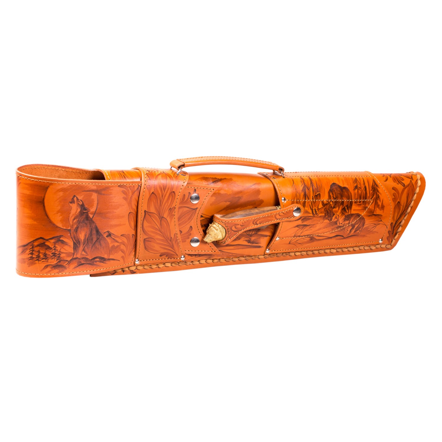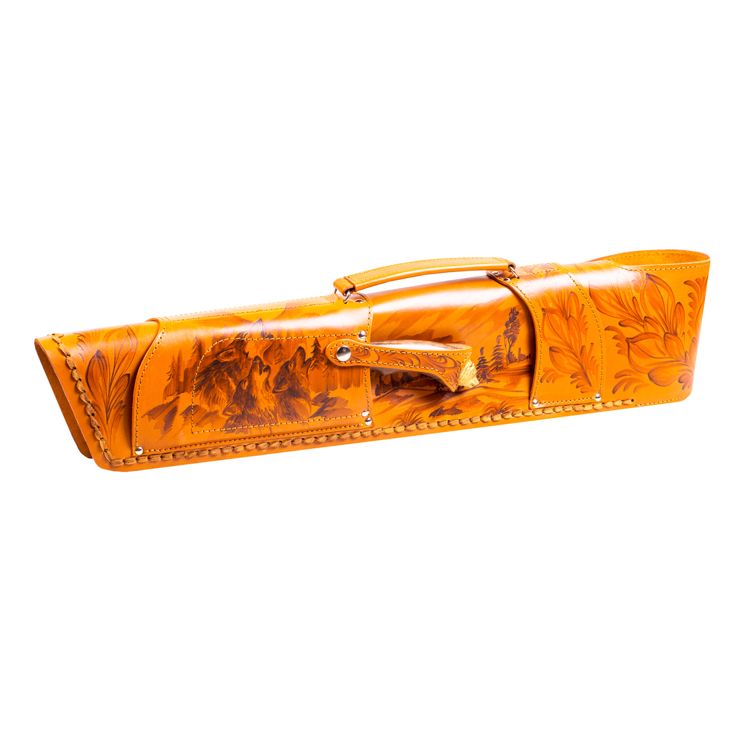 Шампурница из натуральной кожи в виде чехла ружья (производится в 2 цветовых вариантах: темно-коричневый без рисунков либо желто-оранжевый с росписью ручной работы) | 1шт. |