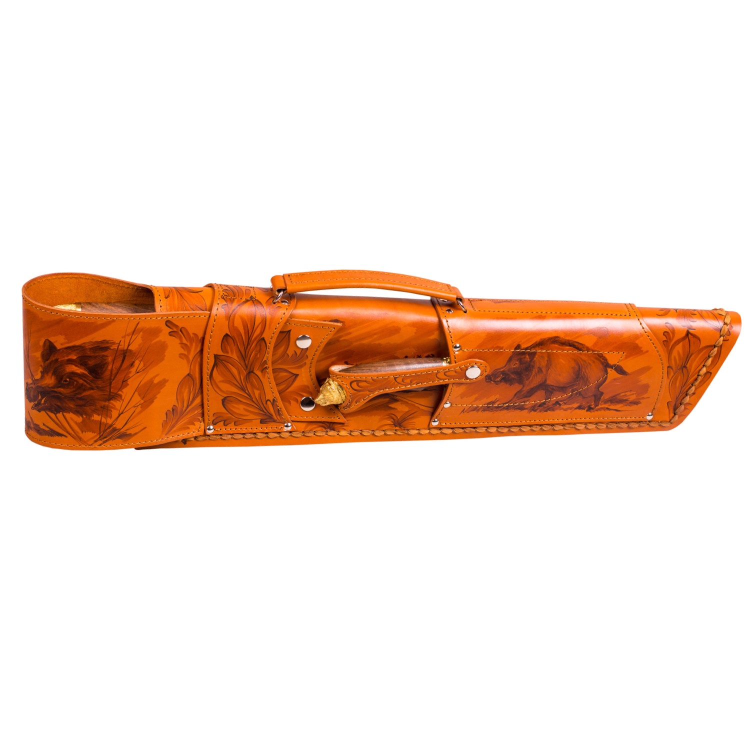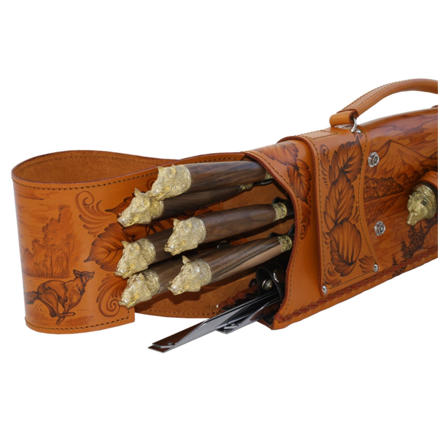 Шампурница из натуральной кожи в виде чехла ружья (производится в 2 цветовых вариантах: темно-коричневый без рисунков либо желто-оранжевый с росписью ручной работы) | 1шт. |