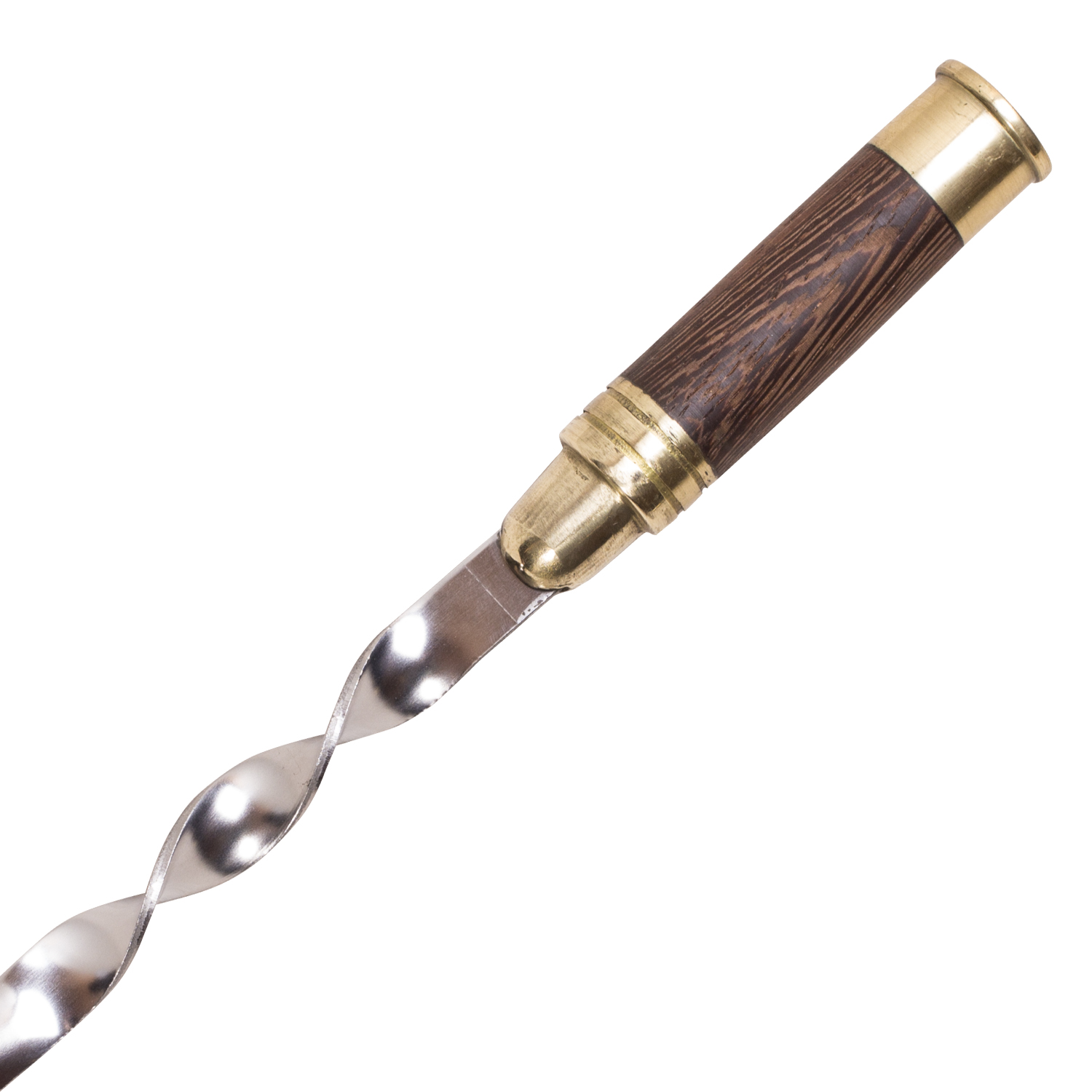 Шампур из нержавеющей стали 2 мм уголком с рукоятью из венге и латуни в форме ружейного патрона (общая длина шампура — 67 см: длина рукояти — 9 см; длина полотна — 58 см) | 6шт. |
