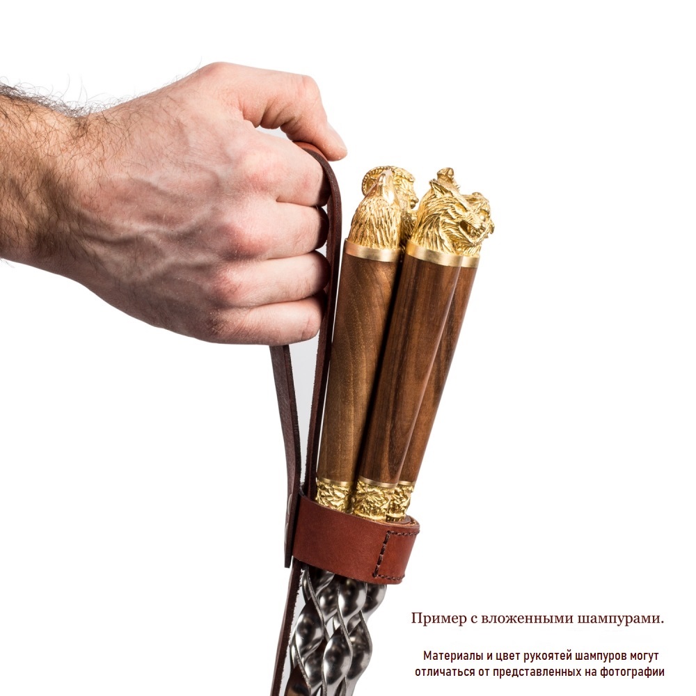 Шампуры 6шт. «Разные звери», венге и мельхиор + Чехол из натуральной кожи «Пламя»
