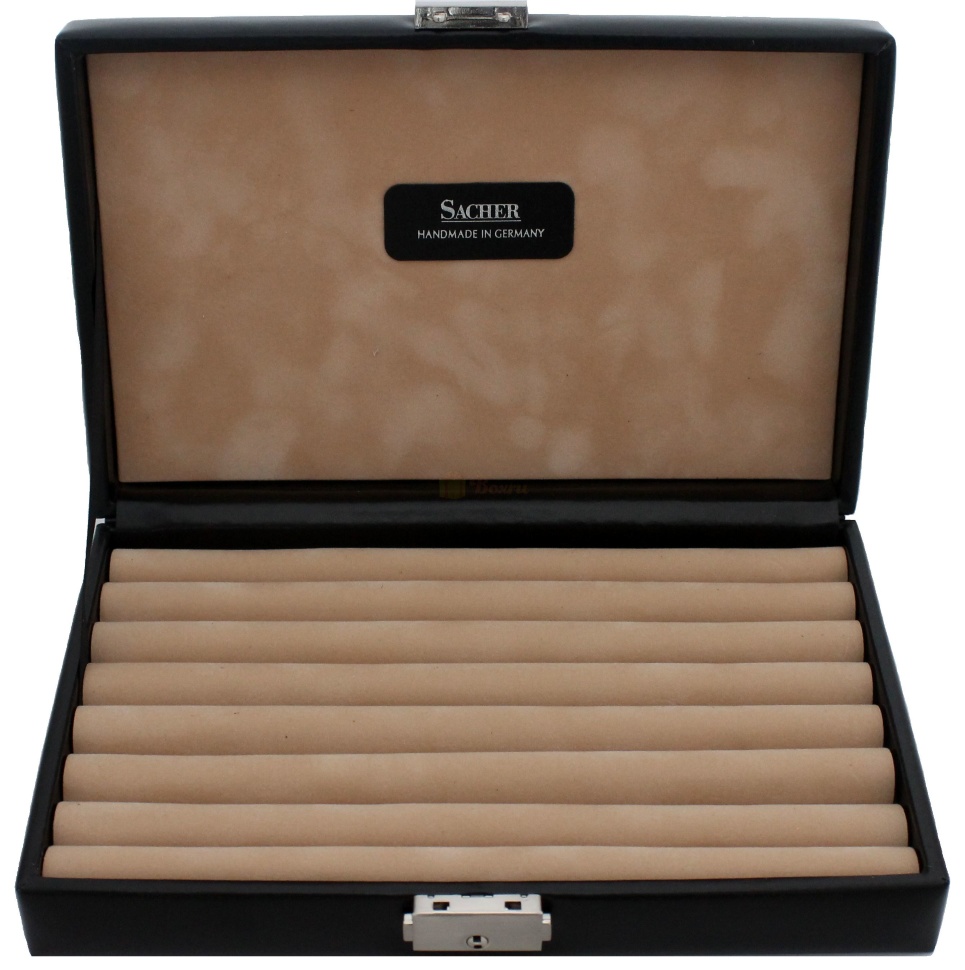 Шкатулка для хранения колец Sacher вмещает в себя достаточно большое количество колец и перстней. В крышку шкатулки вставлено стекло для удобного обзора.