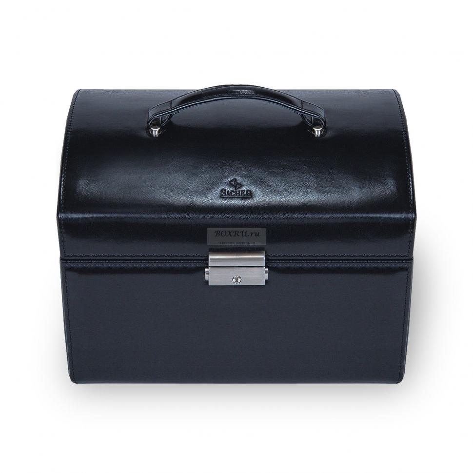 Большая шкатулка Sacher Karin с 3-мя выдвижными ящичками,один из которых глубокий ,2 разделены на два отдела, отдел под часы и браслеты. Верхний отдел разделен на 3 части. Две предусмотрены для больших перстней,кулонов,запонок и сережек с фиксацией.На задней стороне шкатулки предусмотрен еще один вертикальный отдел для крепления сережек ,цепочек,брошек. Внутренняя сторона крышки также предусмотрена для крепления и хранения украшений.