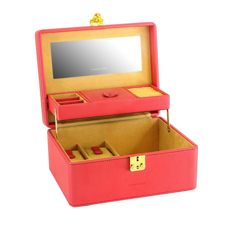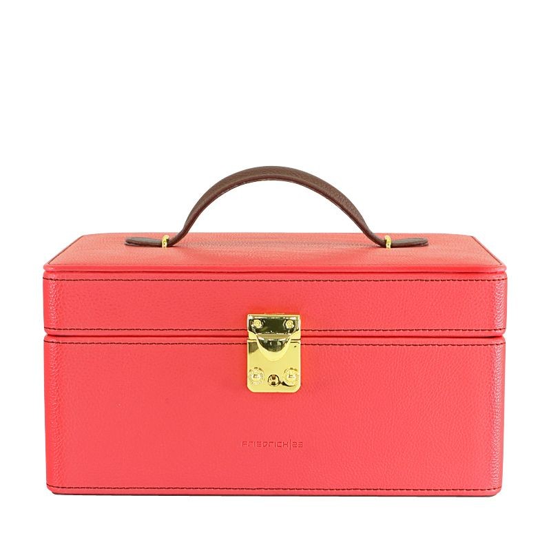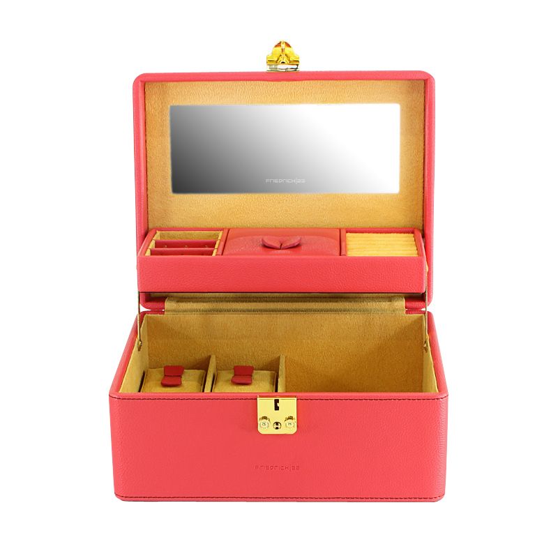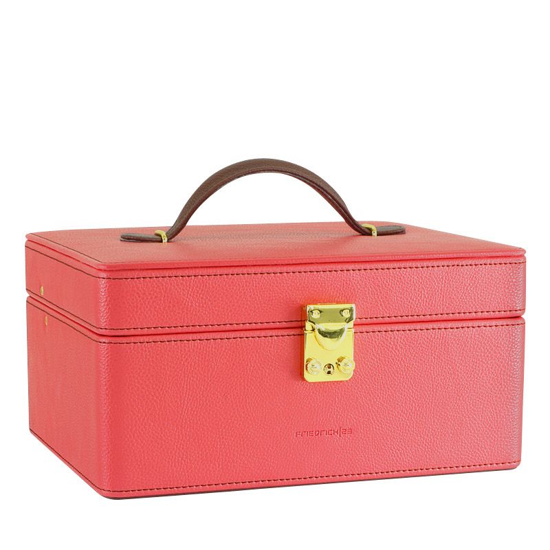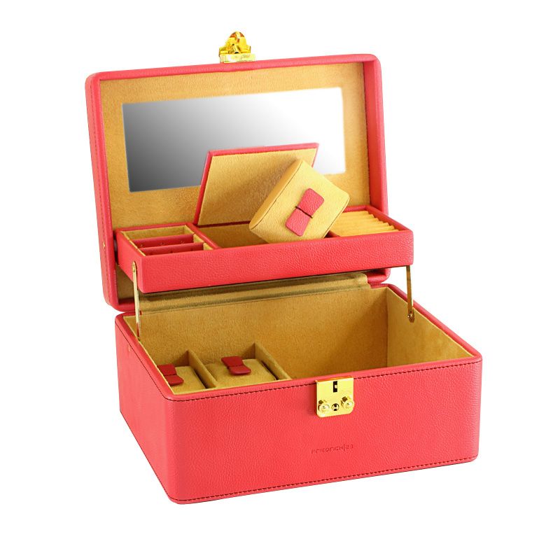 Корпус шкатулки для драгоценностей выполнен из высококачественной экокожи кораллового цвета.