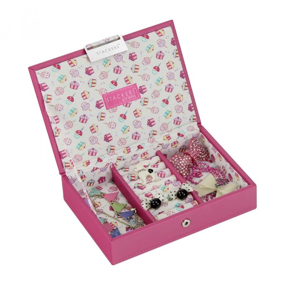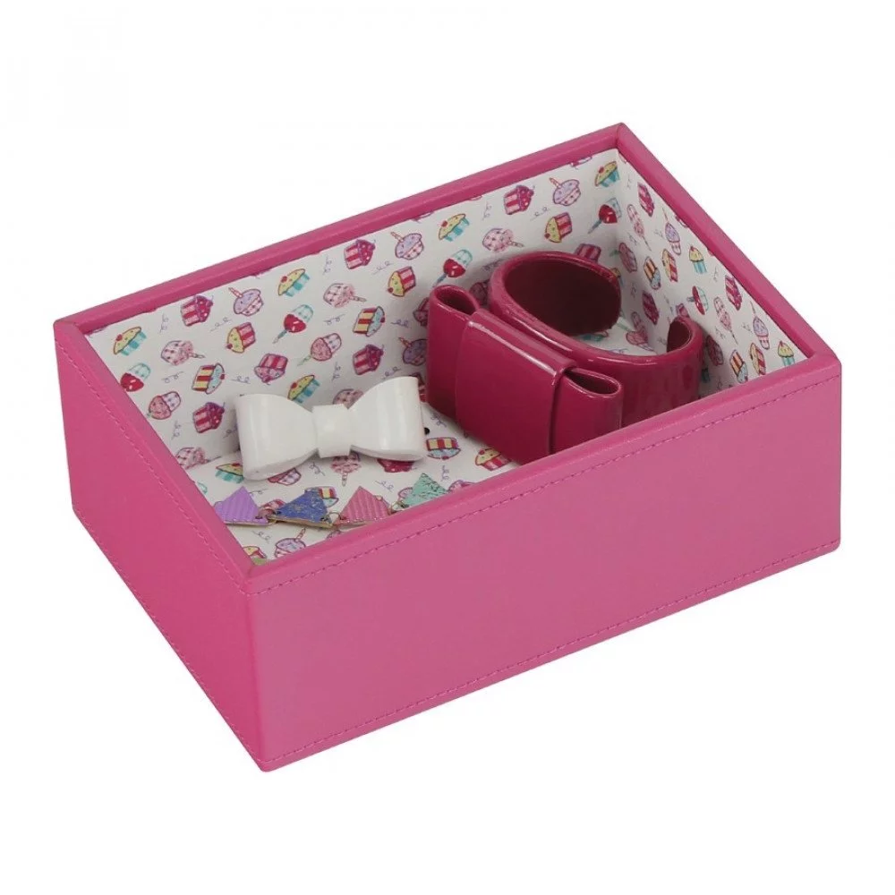 Маленькая ("S"-18x12,5 см) шкатулка для хранения украшений LC Designs арт.73335 из коллекции Stackers выполнена из экокожи яркого цвета фуксия.