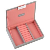 Компактная шкатулка для хранения украшений Stackers от европейской фабрики LC Designs. Внешняя отделка выполнена из высококачественной экокожи серого цвета с фактурой "перо голубя". Внутренняя отделка из хлопковой ткани цвета "античный коралловый".