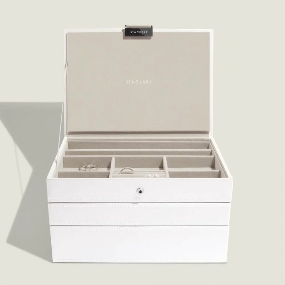 Серия Stackers - модульная коллекция, состоящая из шкатулок, лотков и органайзеров и позволяет "достраивать" этажи шкатулки по мере возрастания количества Ваших украшений.