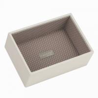 Универсальная шкатулка-лоток для хранения украшений кремового цвета снаружи и нежного карамельного в горошек (Мокка -спот) внутри размера "мини". Этот бокс-лоток из серии Stackers может быть использован как сам по себе, а также в составе многоэтажной шкатулки.