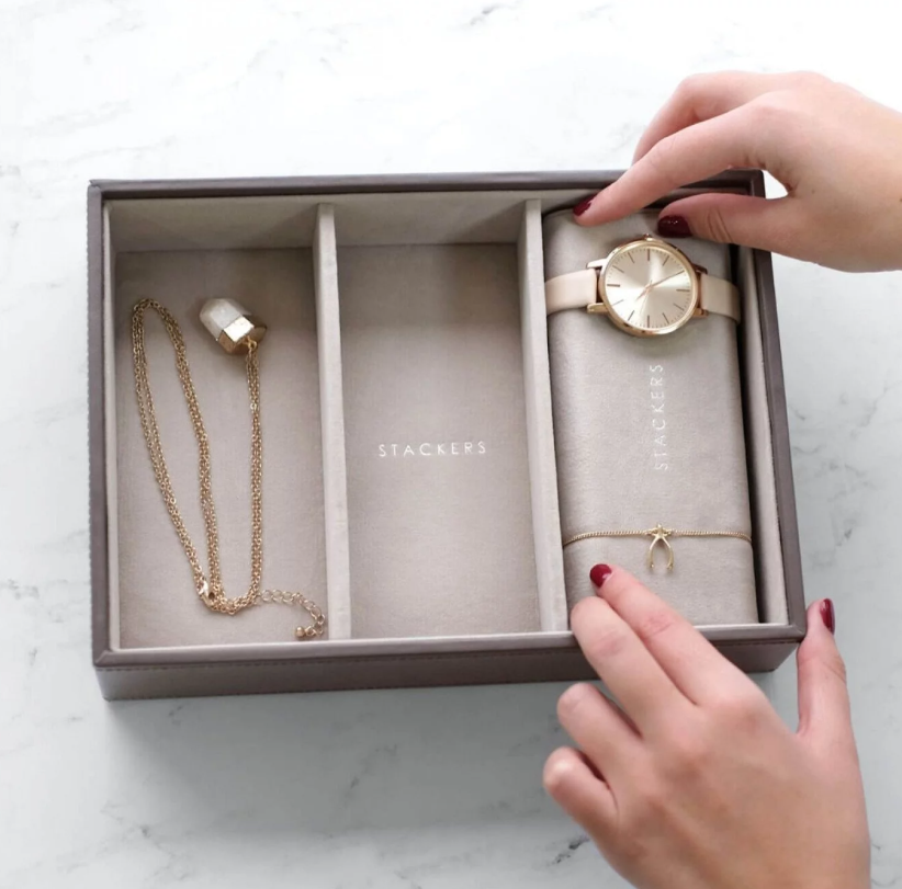 Серия Stackers - модульная коллекция, состоящая из шкатулок, лотков и органайзеров и позволяет "достраивать" этажи шкатулки по мере возрастания количества Ваших украшений.
