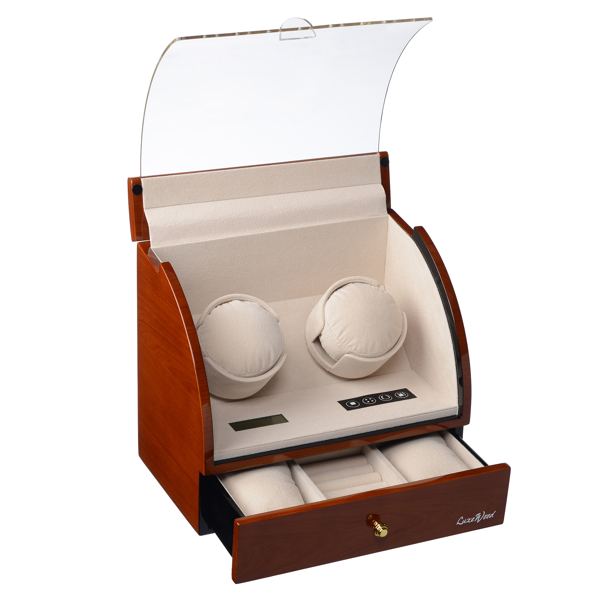 Шкатулка рассчитана на два часовых механизма и работает полностью в автоматическом режиме, поэтому вмешательство со стороны человека не требуется – достаточно просто выставить оптимальный режим вращения.