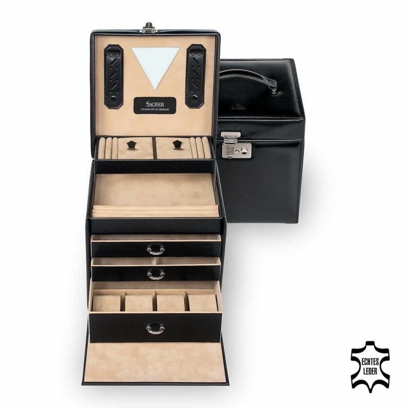 Шкатулка для украшений Sacher, черная, кожа, 80.107.010443