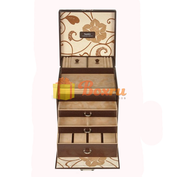 Большая шкатулка верхний ярус которой, автоматически поднимается при открытии шкатулки.