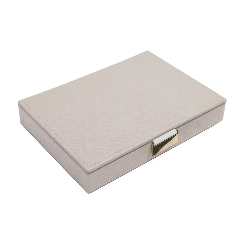 Шкатулка для хранения украшений Stackers от английской марки LC Designs выполнена из высококачественной экокожи цвета тауп с фактурой "перо голубя".