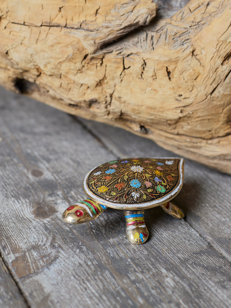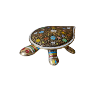 Шкатулка "Черепаха" резная латунь тёмная цветная эмаль 5''