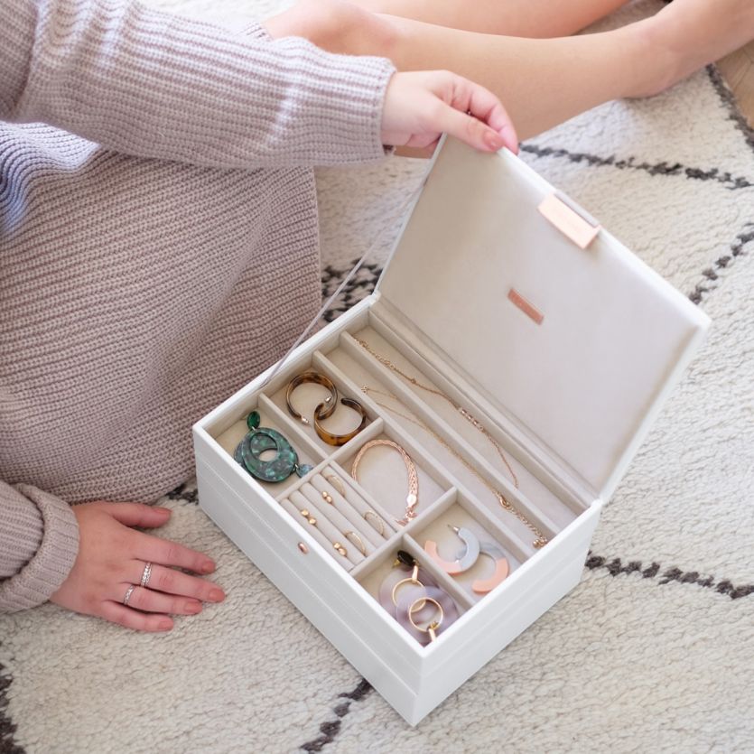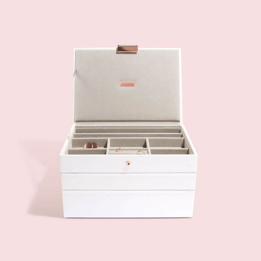 Каждый уровень имеет разнообразные отделы и ячейки для различных украшений.