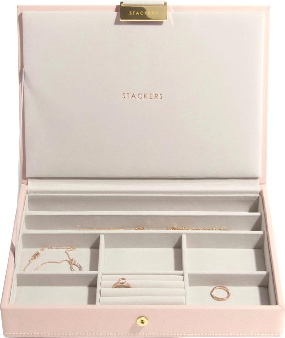 Также в ассортименте Stackers есть мужские шкатулки , а ещё запатентованные лотки и органайзеры для хранения украшений в столах и комодах.