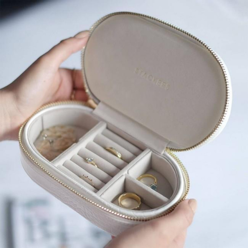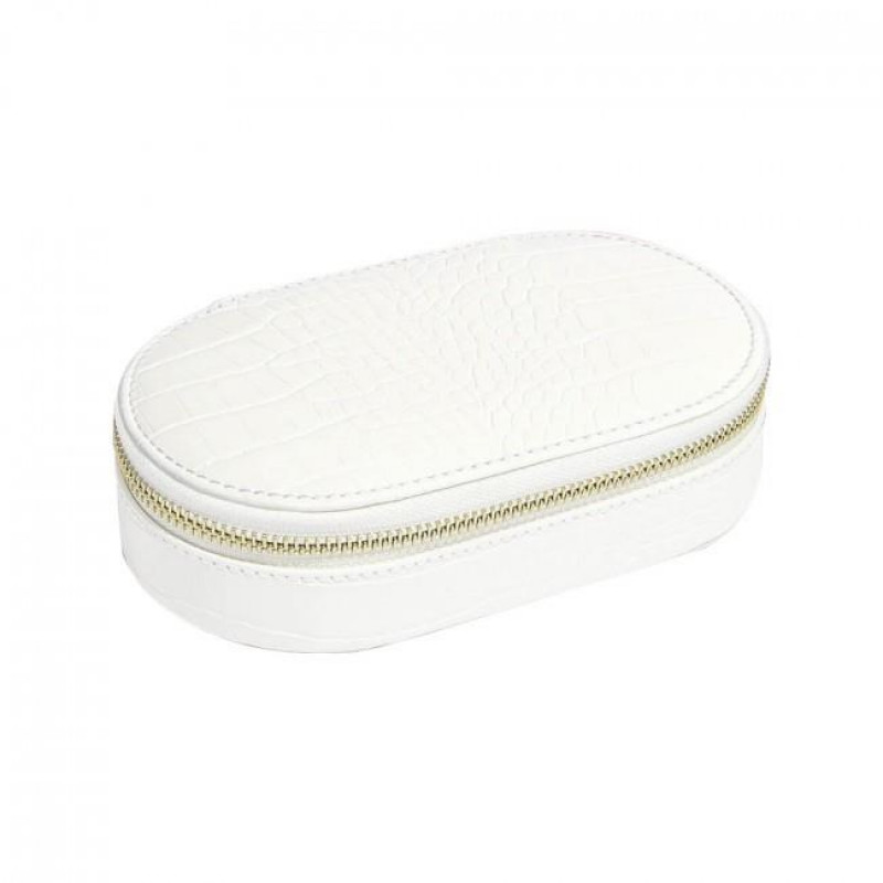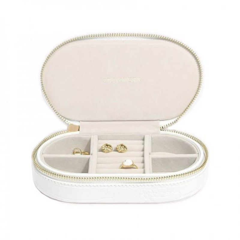 Вместительный овальный дорожный футляр для хранения украшений из новой коллекции Stackers CHALK WHITE CROC от британской компании LC Designs.