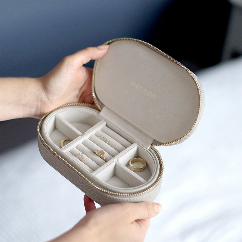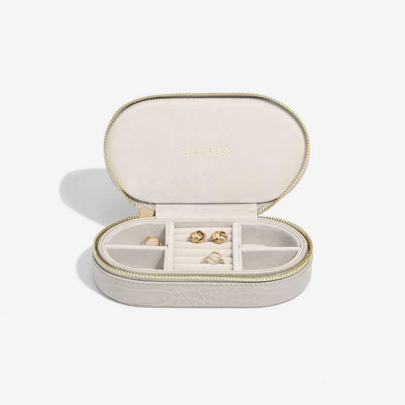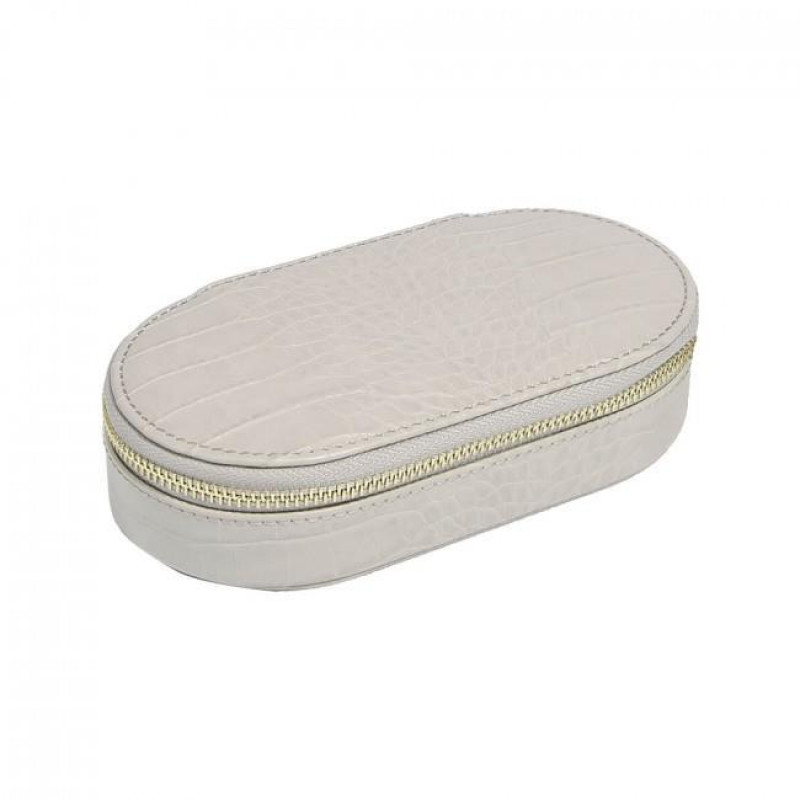 Вместительный овальный дорожный футляр для хранения украшений из новой коллекции Stackers CHALK WHITE CROC от британской компании LC Designs.