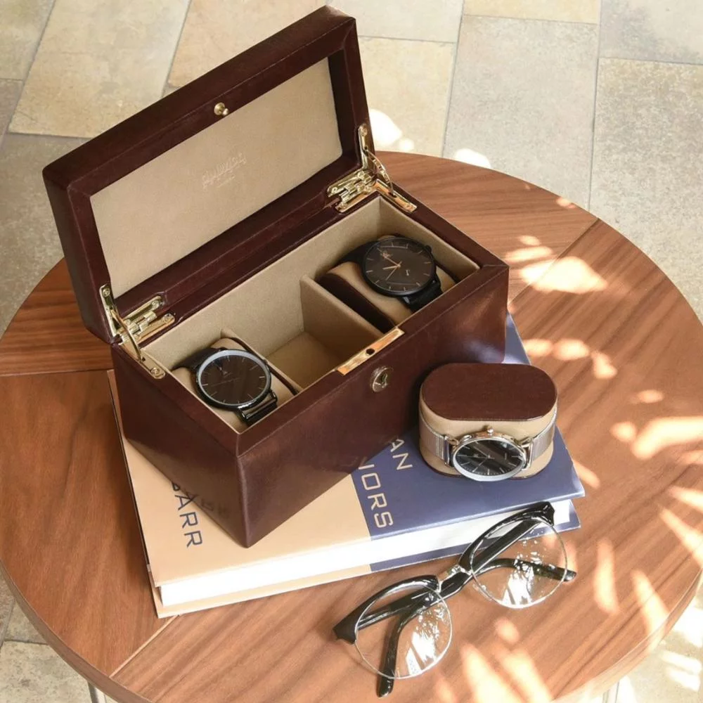Шкатулка для хранения часов Dulwich станет идеальным подарком для делового мужчины, который предпочитает строгий консервативный стиль.