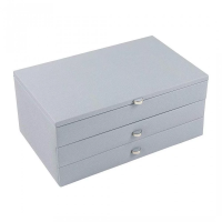 В двух выдвижных полках универсальные отделения различных размеров для хранения украшений.
