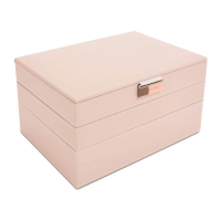 Трёхуровневая шкатулка среднего размера ("М"-25x18 см) для хранения украшений из лимитированной коллекции Stackers Rose Gold с внешней отделкой из экокожи бледно-розового цвета с фактурой "перо голубя".