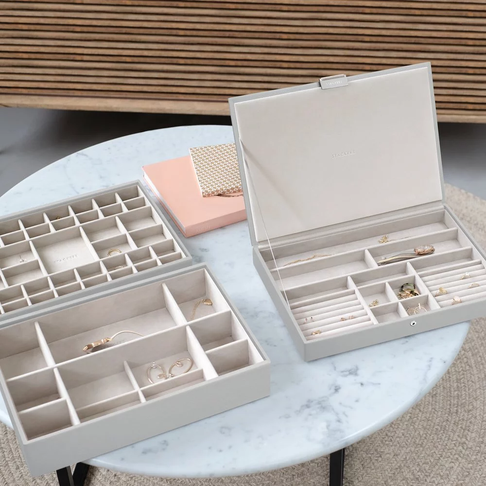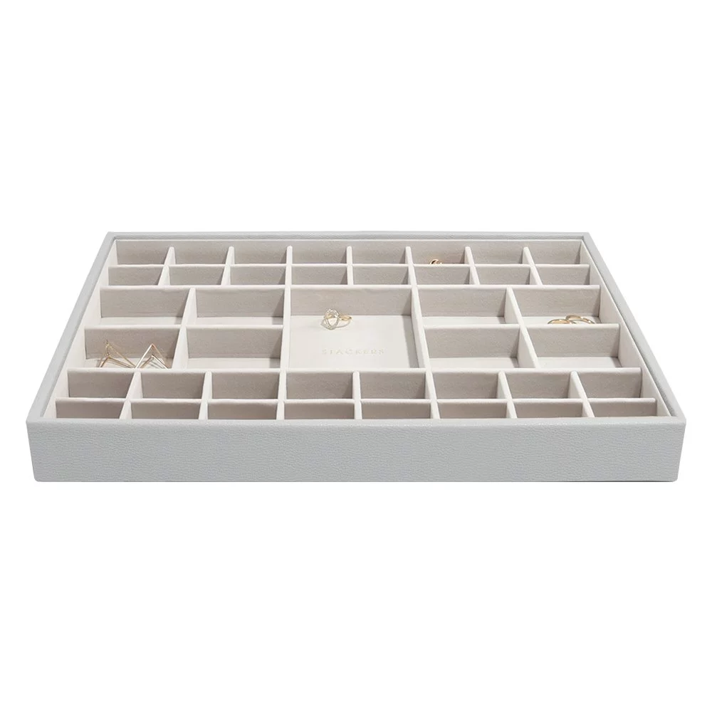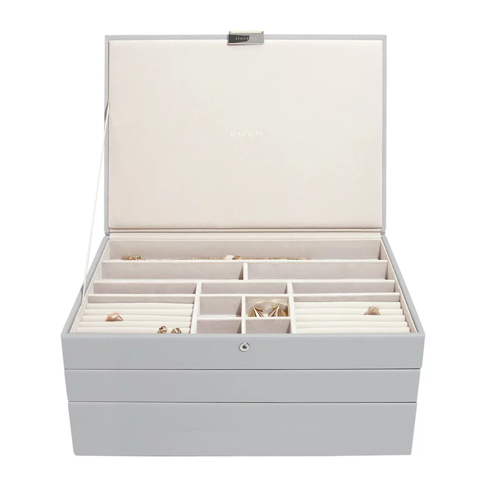 Большая ("XL"- 36,6x25 см) трехуровневая шкатулка для комфортного хранения украшений из коллекции Stackers светло-серого цвета