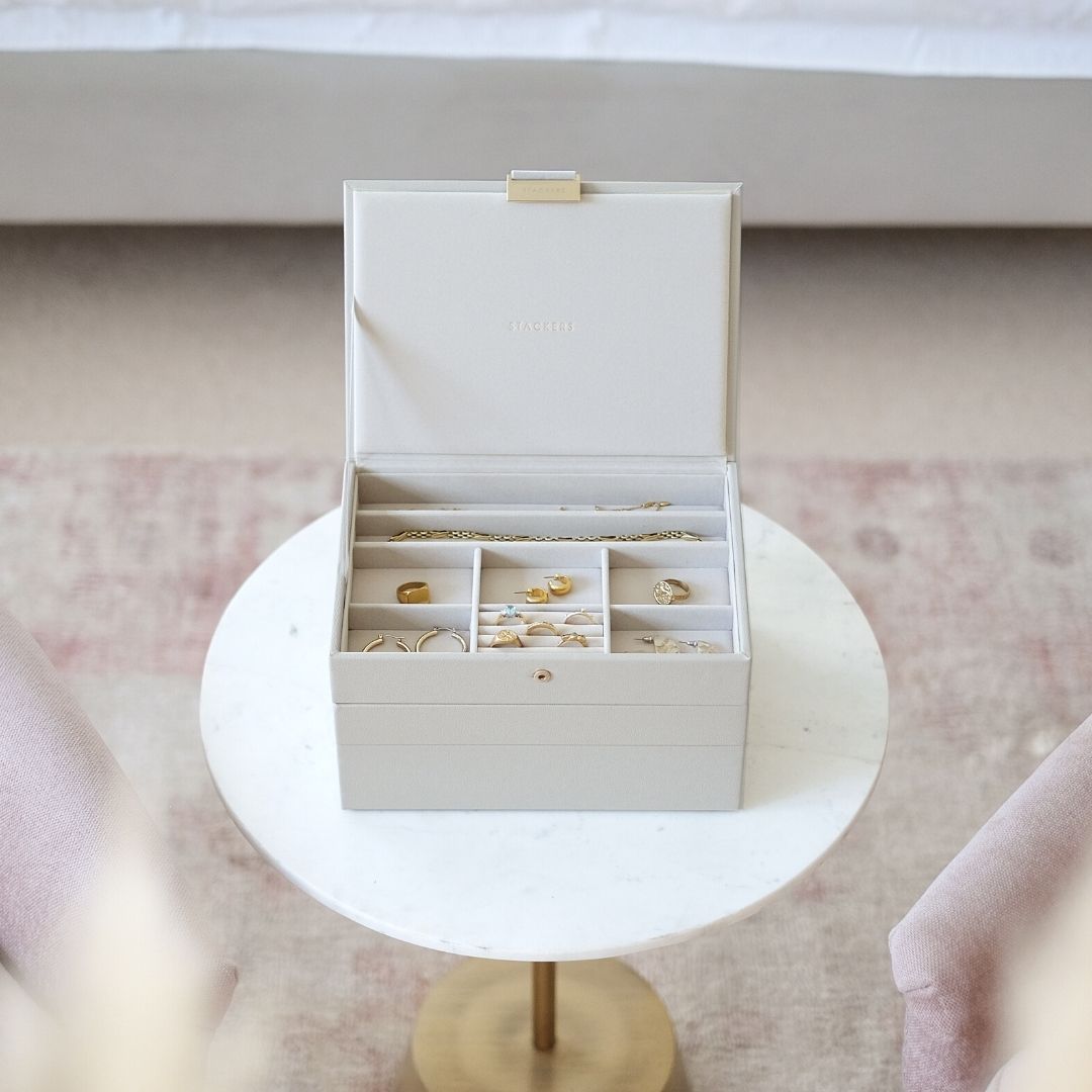 Серия Stackers - модульная коллекция шкатулок, продуманная до мелочей, которая позволяет создавать свои собственные, выбирая, какие слои и аксессуары лучше всего подходят для вашей коллекции украшений.