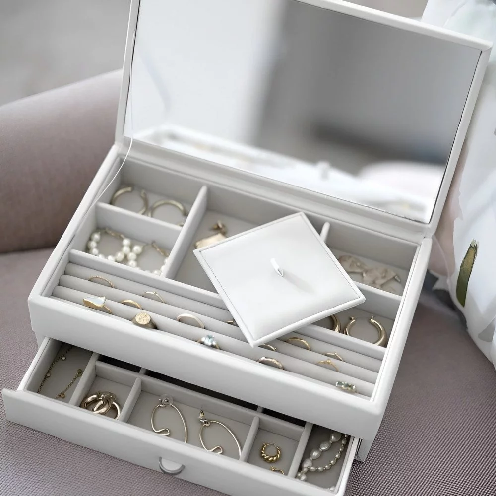 Эта компактная и изысканная шкатулка идеально подойдёт для аккуратной организации колец, цепочек и других украшений.