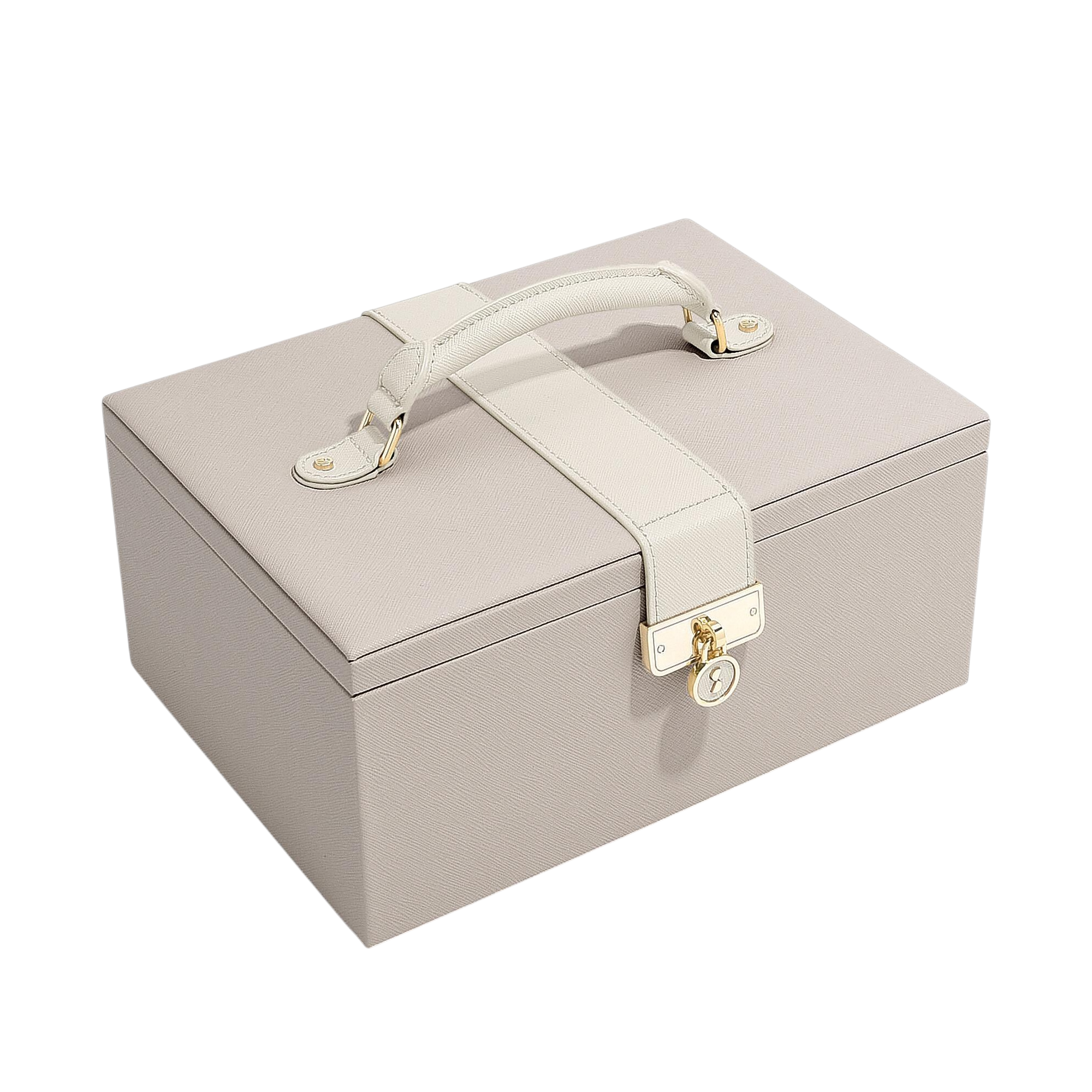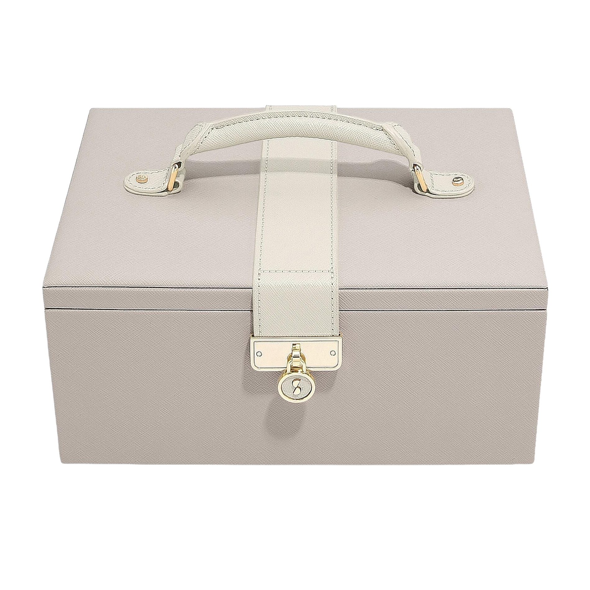 Съёмный верхний лоток включает две длинные секции для цепочек, 4 средних отсека для браслетов и серёг. а также валик для колец.