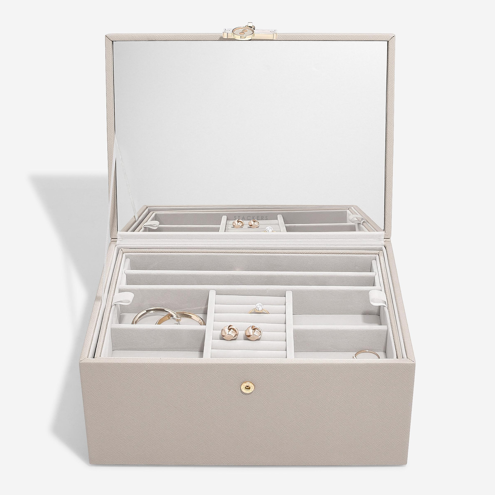 Также в ассортименте Stackers есть мужские шкатулки , а ещё запатентованные лотки и органайзеры для хранения украшений в столах и комодах.