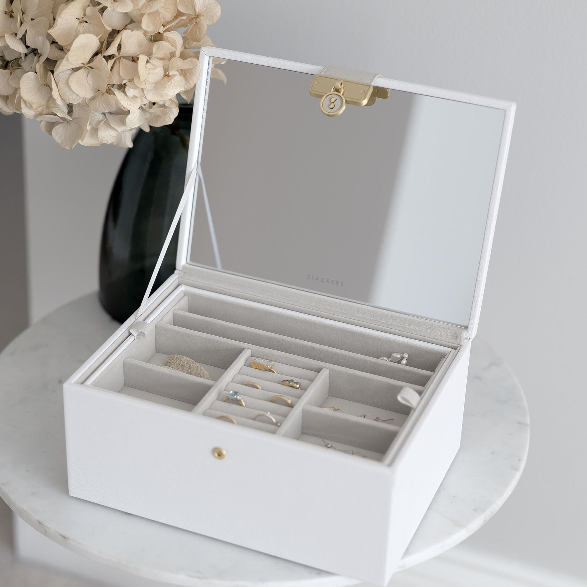 Серия Stackers - модульная коллекция шкатулок, продуманная до мелочей, которая позволяет создавать свои собственные, выбирая, какие слои и аксессуары лучше всего подходят для вашей коллекции украшений.