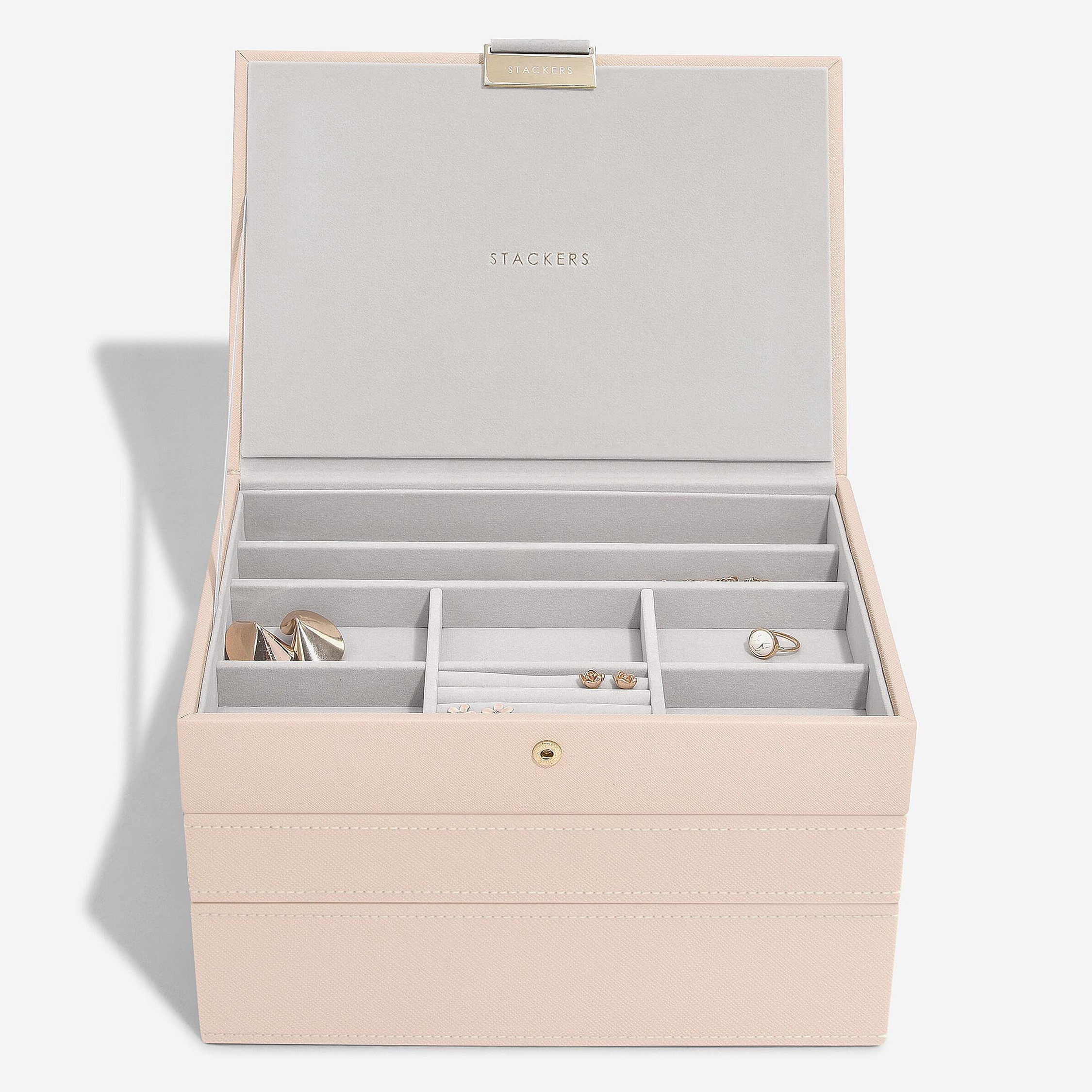 Серия Stackers - модульная коллекция шкатулок, продуманная до мелочей, которая позволяет создавать свои собственные, выбирая, какие слои и аксессуары лучше всего подходят для вашей коллекции украшений.