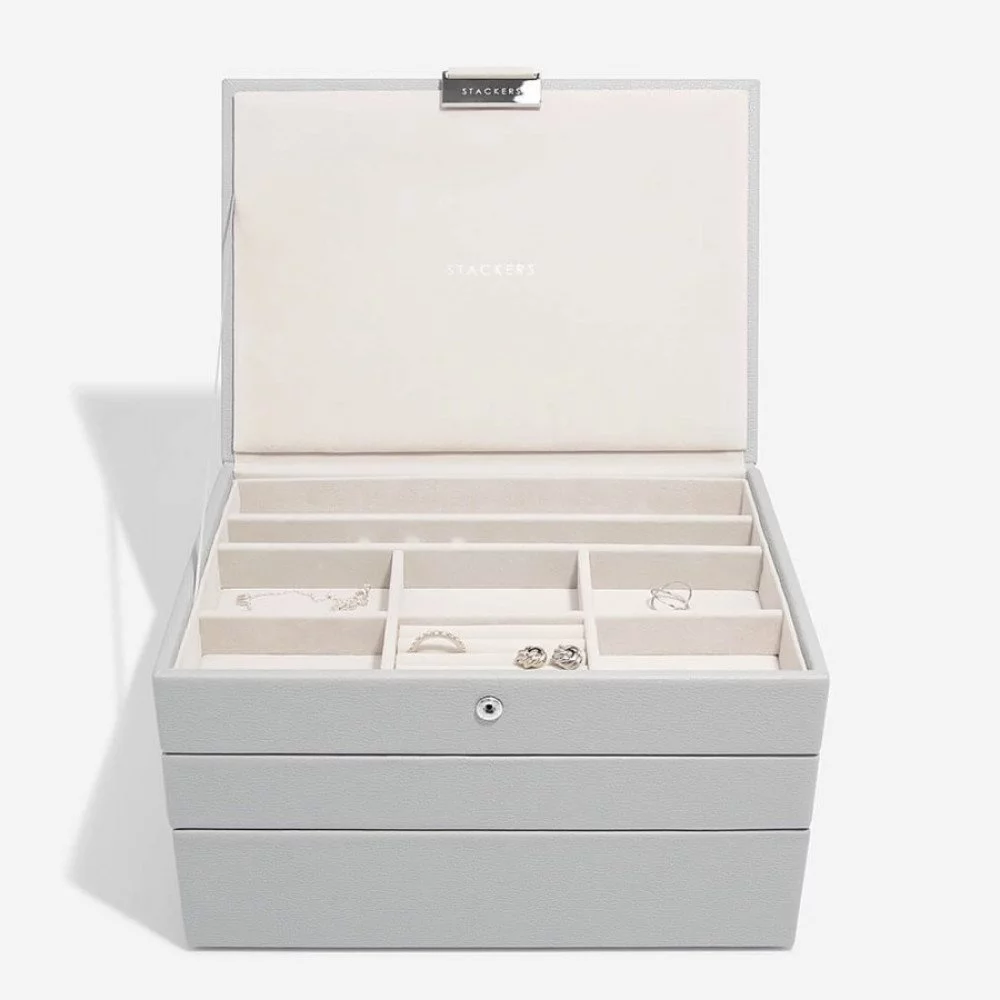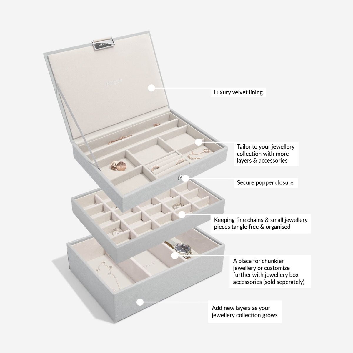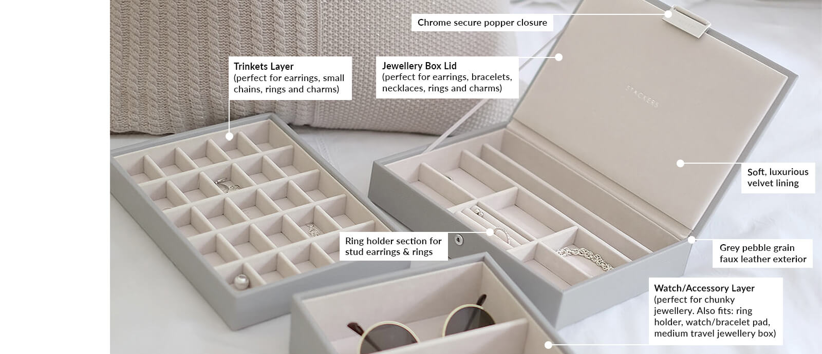Серия Stackers - модульная коллекция шкатулок, продуманная до мелочей, которая позволяет создавать свои собственные, выбирая, какие слои и аксессуары лучше всего подходят для вашей коллекции украшений.