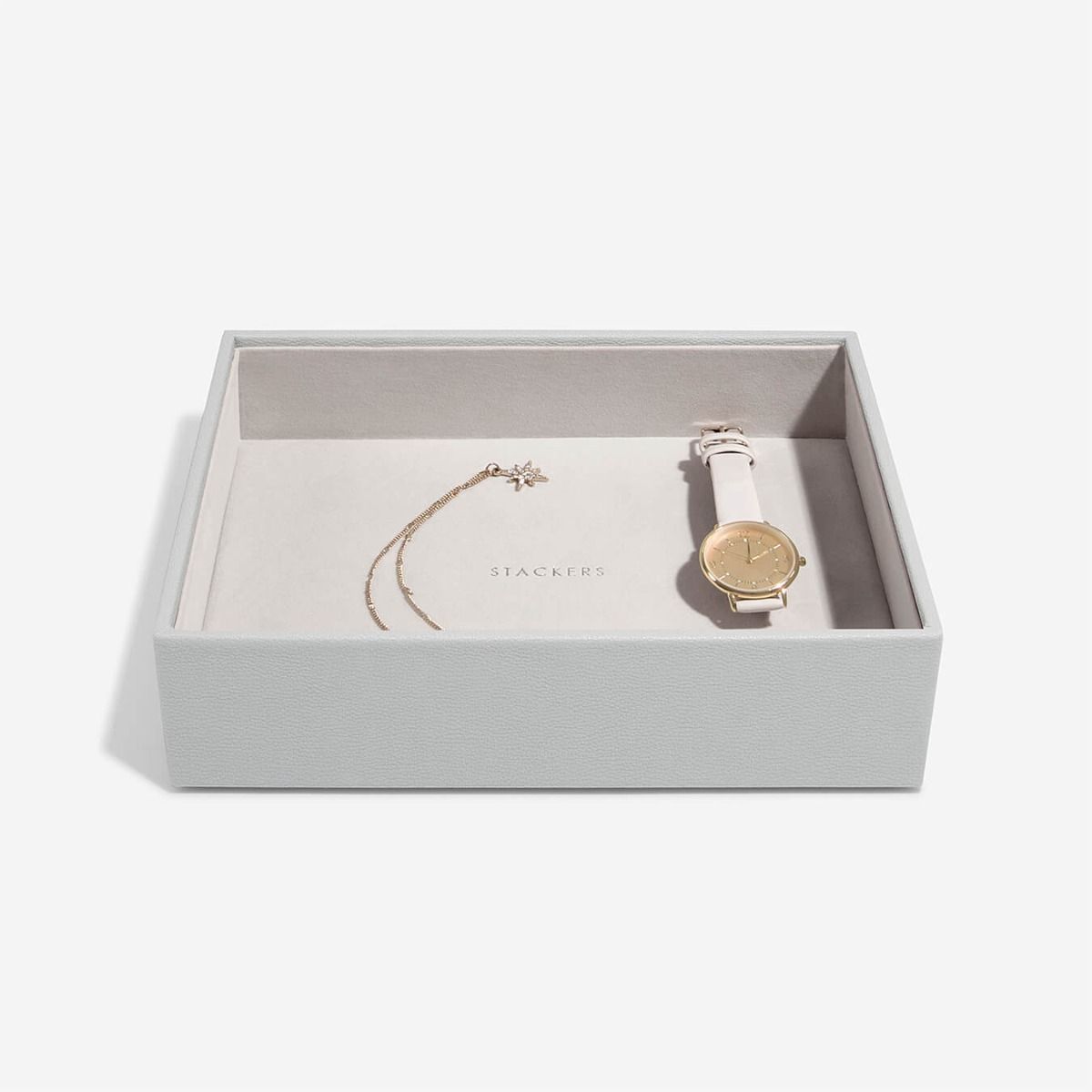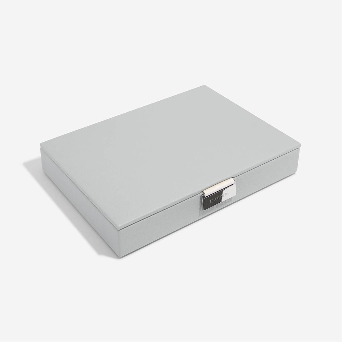 Шкатулка выполнена из высококачественной экокожи серого цвета, внутри изделие отделано велюром .