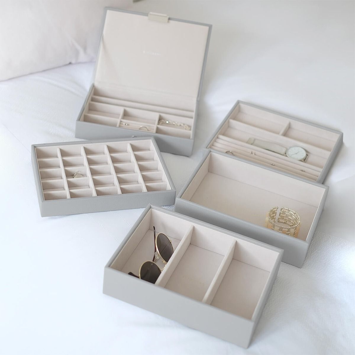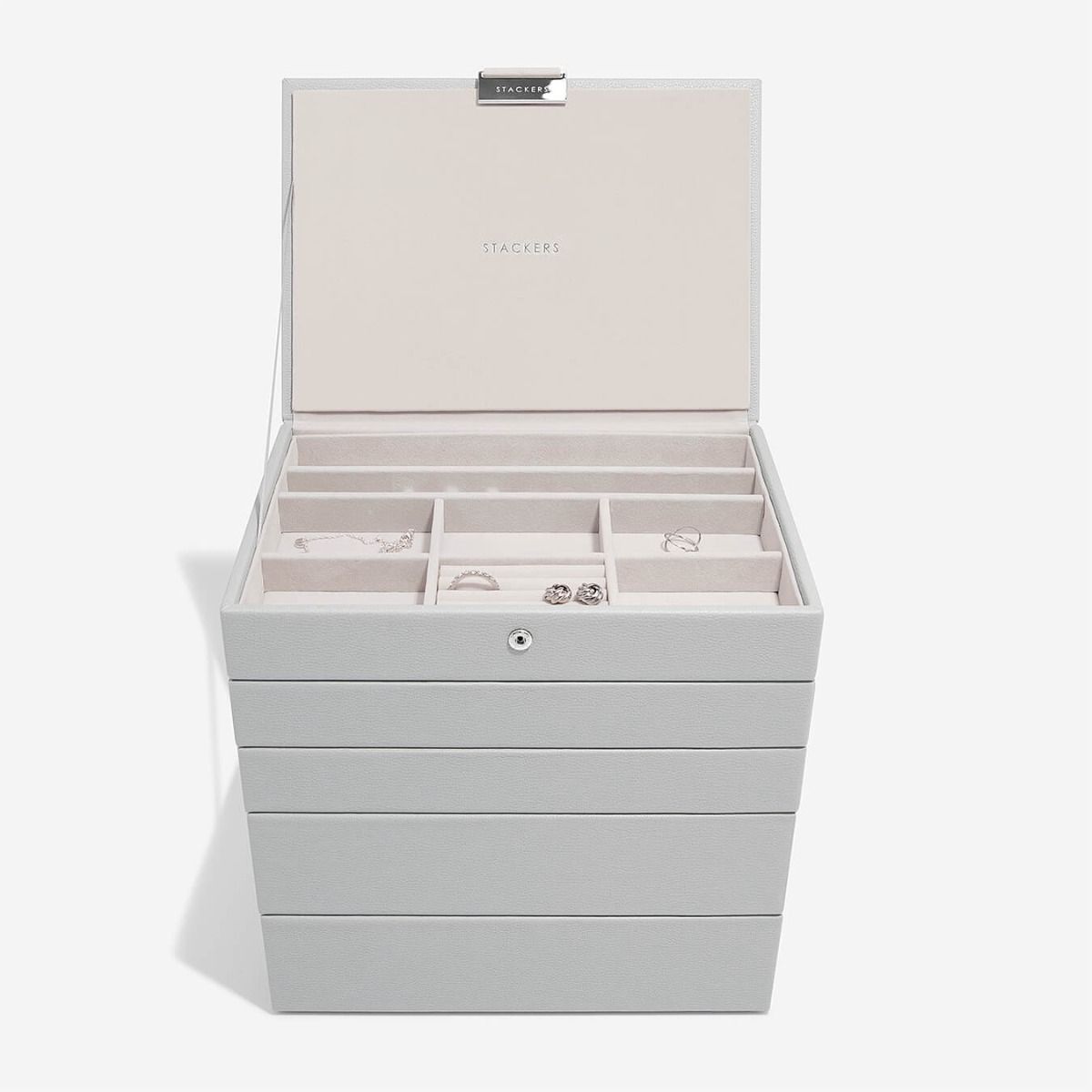 Каждый уровень имеет разнообразные отделы и ячейки для украшений.