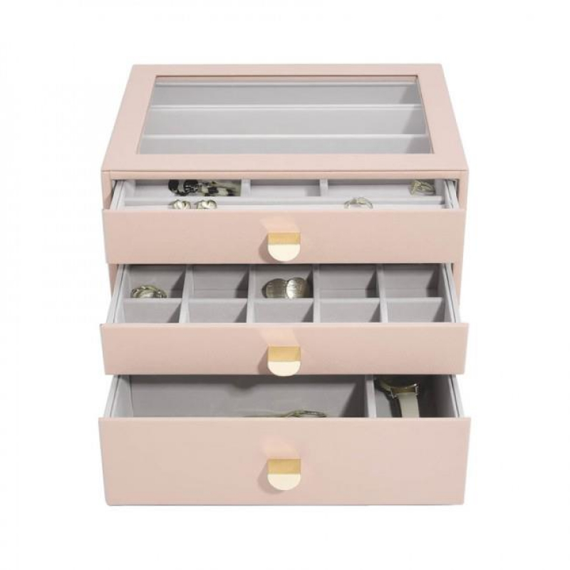 Трехуровневая ("М"-25x18 см;) шкатулка для хранения украшений из коллекции Stackers от английской марки LC Designs с прозрачным стеклом и тремя выдвижными ящиками.