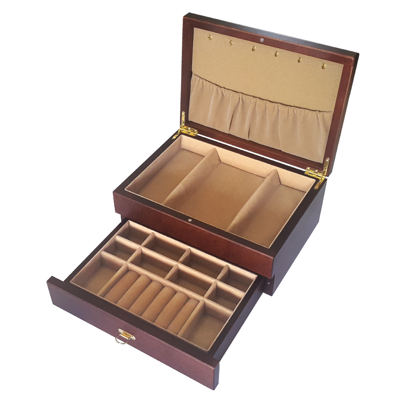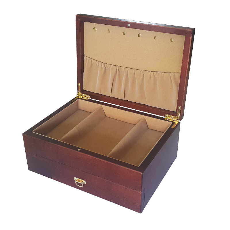 - выдвижной ящичек состоящий из ячеки с валиками для колец и 10 ячеек для бижутерии