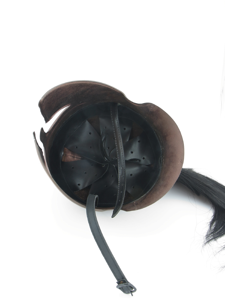 Черный плюмаж, закрепляемый сверху шлема, служил украшением и одновременно повышал статус владельца, подчеркивая его воинскую честь и принадлежность к знатному роду.