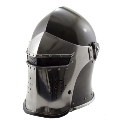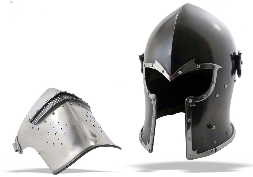 Средневековый черный рыцарский шлем "Черный Рыцарь" (Барбют) с открывающимся и снимающимся забралом