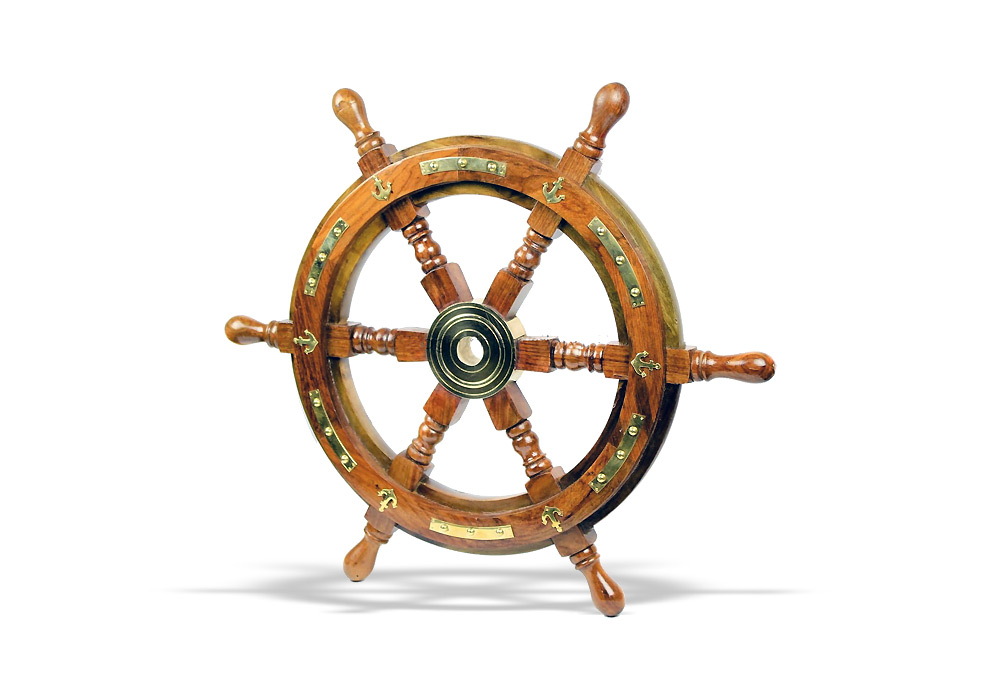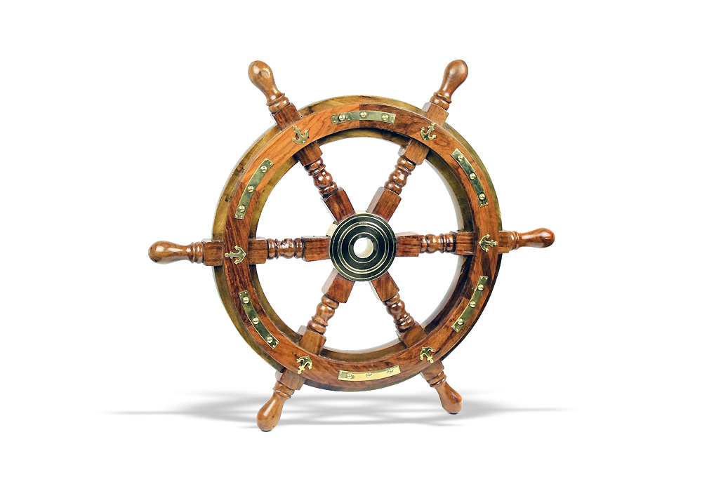 Изготовленный из массива палисандра премиум-класса с цельной латунной ступицей в центре и изысканными латунными вставками в виде якорей, станет идеальным украшением для вашего дома, яхты, бара или офиса.