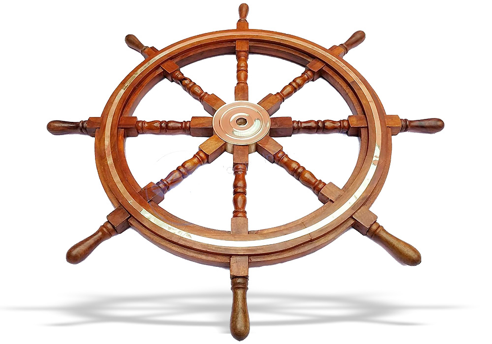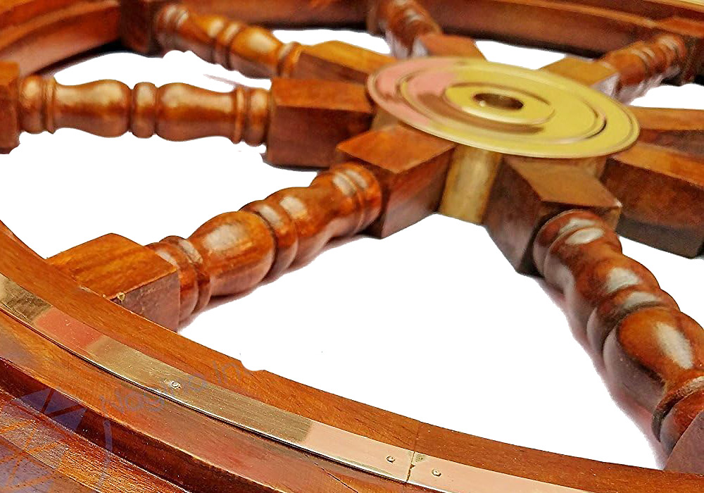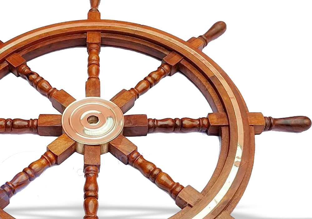Штурвал украшен элегантным латунным ободом, который добавляет ему дополнительного шарма и блеска.