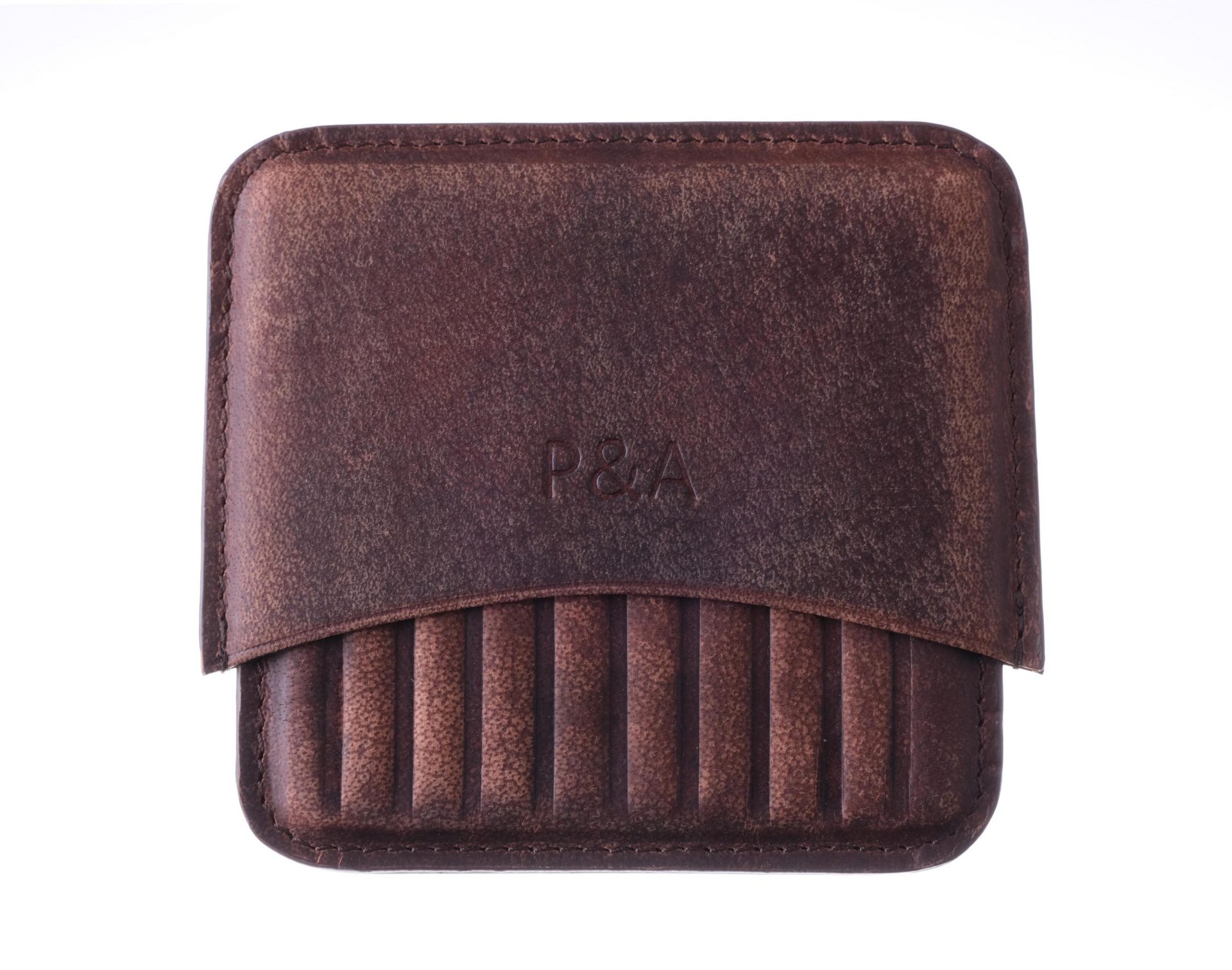 Сигаретница P&A на 10 сигарет или сигарилл из высококачественной натуральной буйволиной кожи, чрезвычайно прочной и износостойкой, с финишной отделкой "искусственное старение" в винтажном стиле Дикого Запада. Производится итальянской компанией Parenti-Agostinelli из Милана.