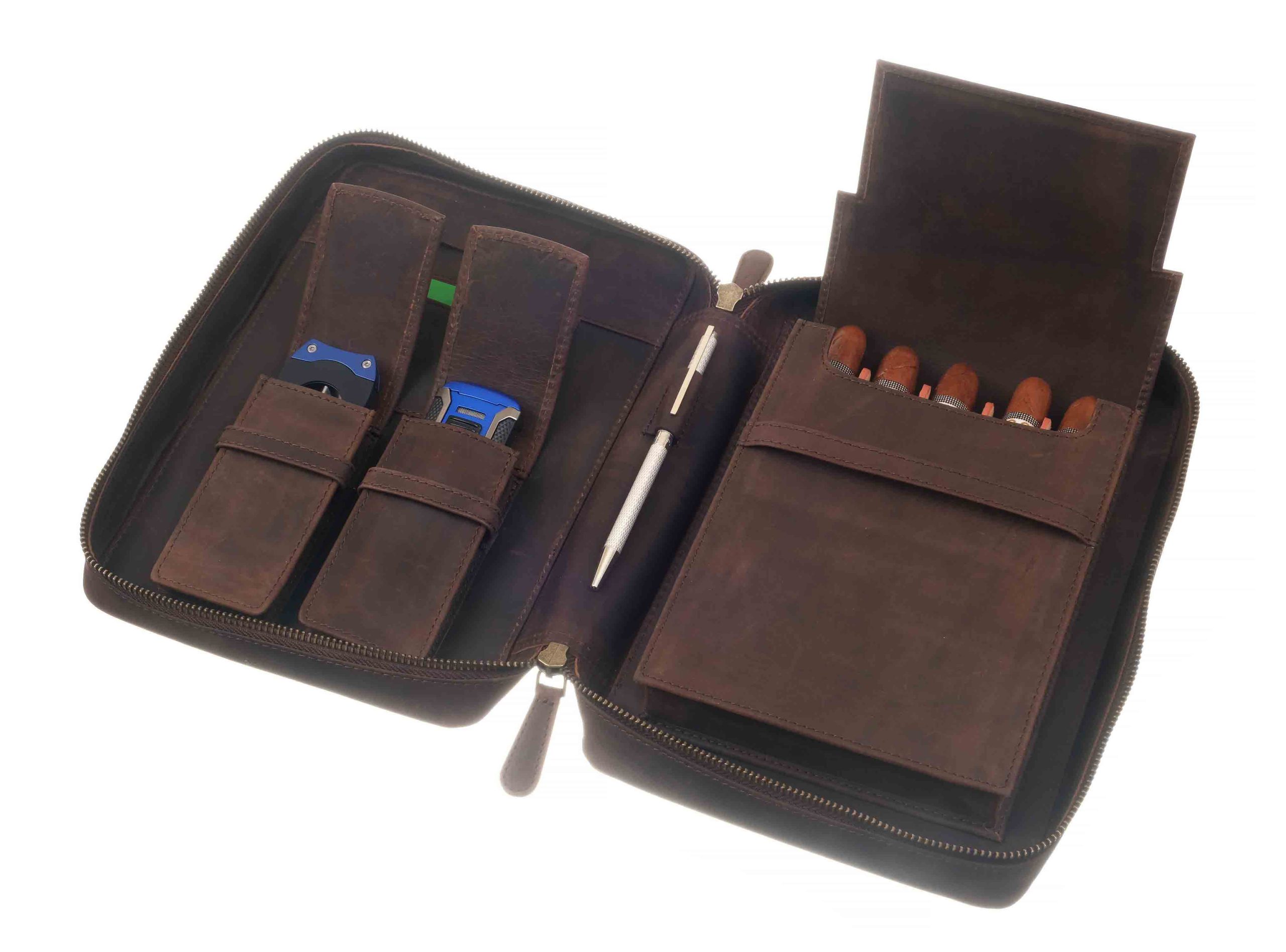 Сигарная сумка-хьюмидор P&A (Parenti&Agostinelliна 5 сигар, натуральная кожа